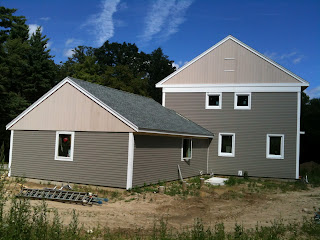 | The siding is up on the west side of the house and garage. |